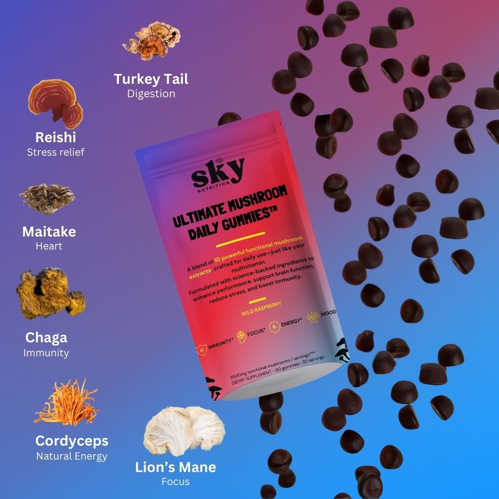 At Sky Nutrition, we combine tradition and innovation to offer quality mushroom-based gummies that celebrate the power of nature. Each product is crafted with care and transparency, bringing you the essence of nature in a delicious and convenient form.